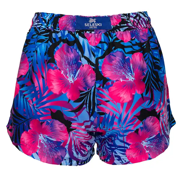Liga elástica en la cintura del short, tortuga bordada en la parte inferior izquierda, cordones de altísima calidad con terminación de acero grabada Seleski.
