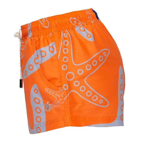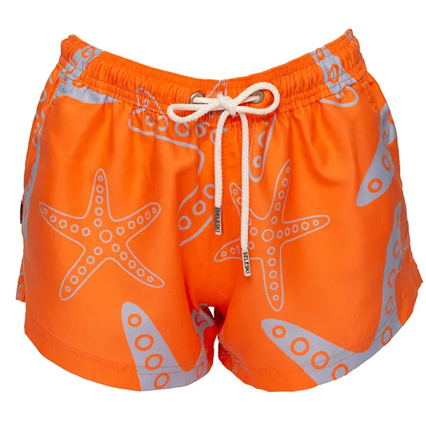 Liga elástica en la cintura del short, tortuga bordada en la parte inferior izquierda, cordones de altísima calidad con terminación de acero grabada Seleski. 2 bolsillos laterales. 1 bolsillo trasero sin tapa. 100% Polyester. Recomendados para uso en playa y piscina. Secado rápido. Malla interna. Las medidas están especificadas en la tabla de medidas. Peso aproximado de 400 gramos.